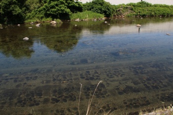 数十〜百匹ほどの集団が、一つの筋をつくって上流へ向かっていきます。
